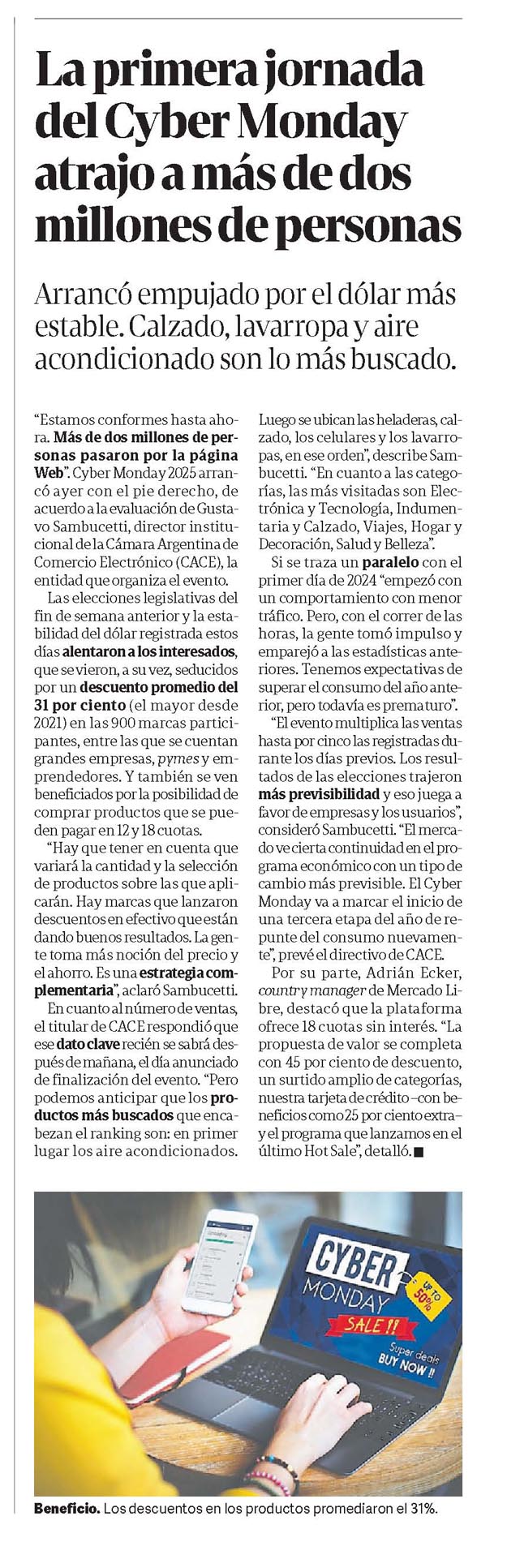 CLARÍN – La primera jornada del Cyber Monday atrajo a más de dos millones de personas