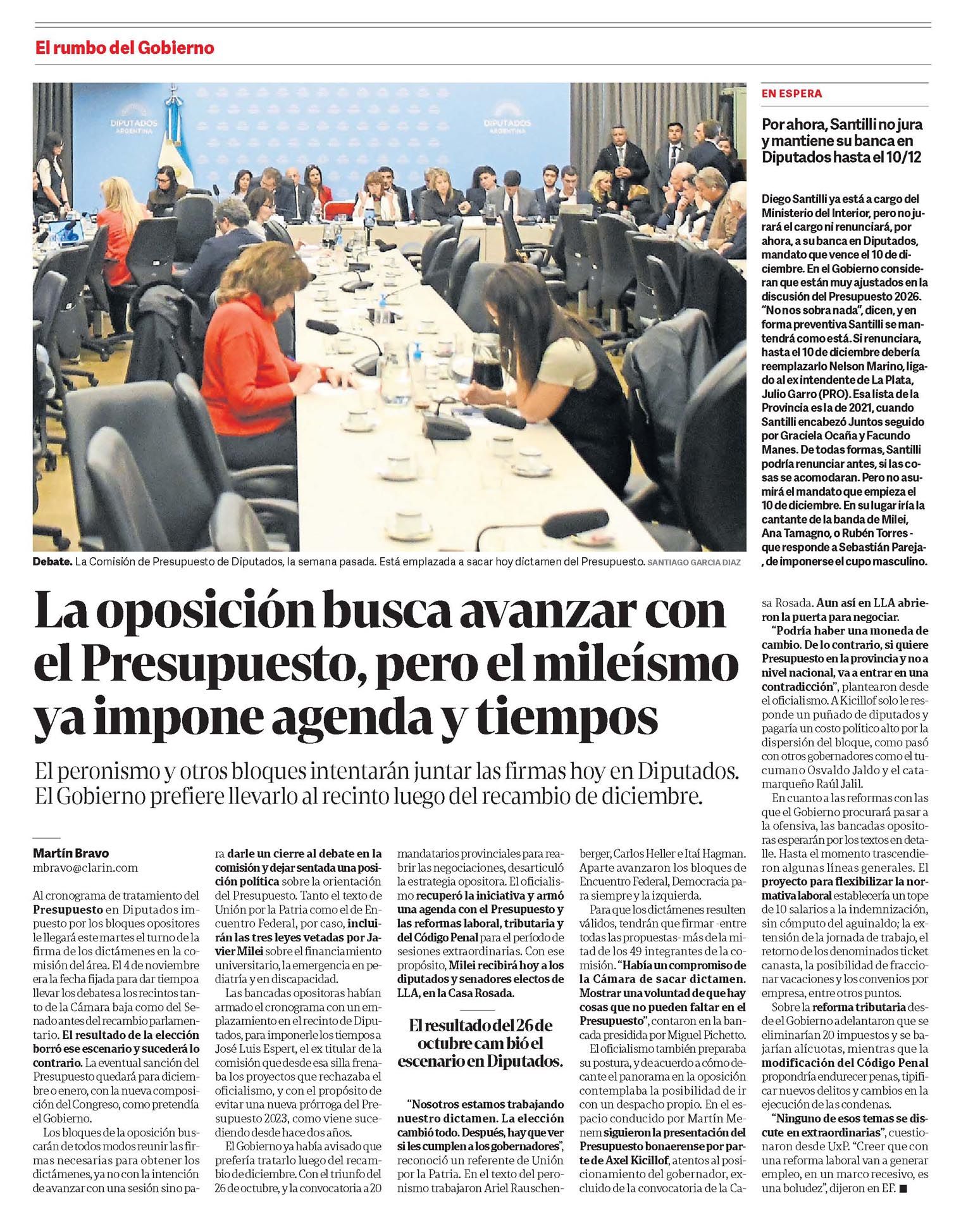 CLARÍN – La oposición busca avanzar con el Presupuesto, pero el mileísmo impone agenda y tiempos