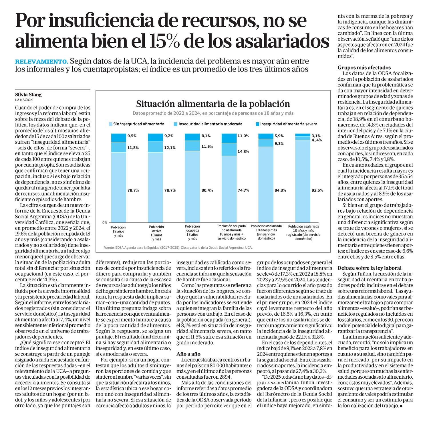 LA NACIÓN – Por insuficiencia de recursos, no se alimenta bien el 15% de los asalariados