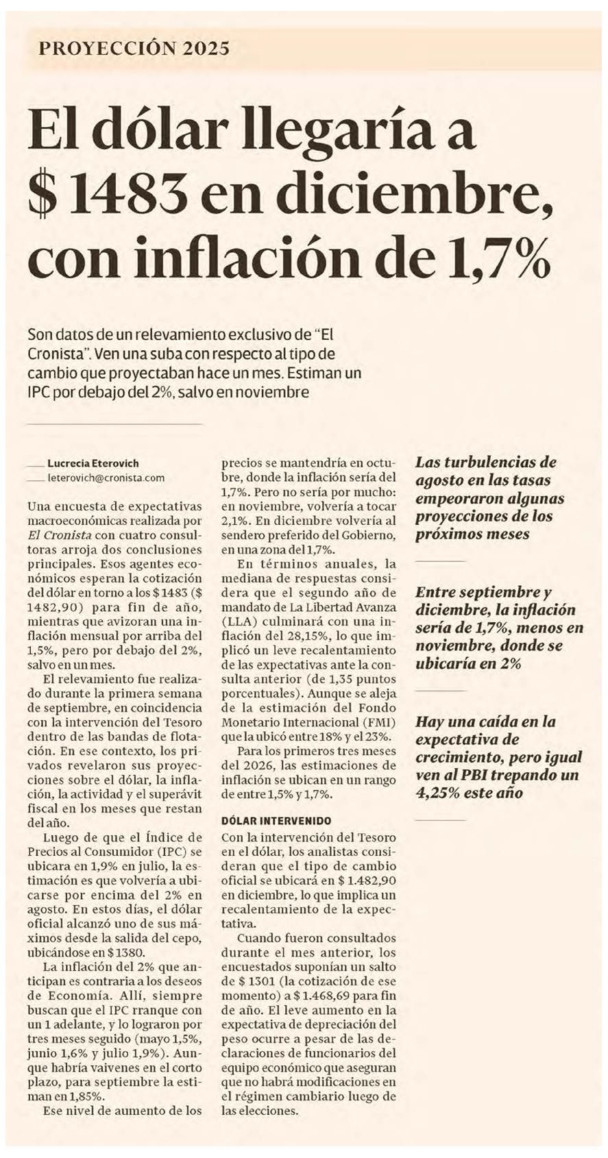 EL CRONISTA – El dólar llegaría a $ 1483 en diciembre, con inflación de 1,7%