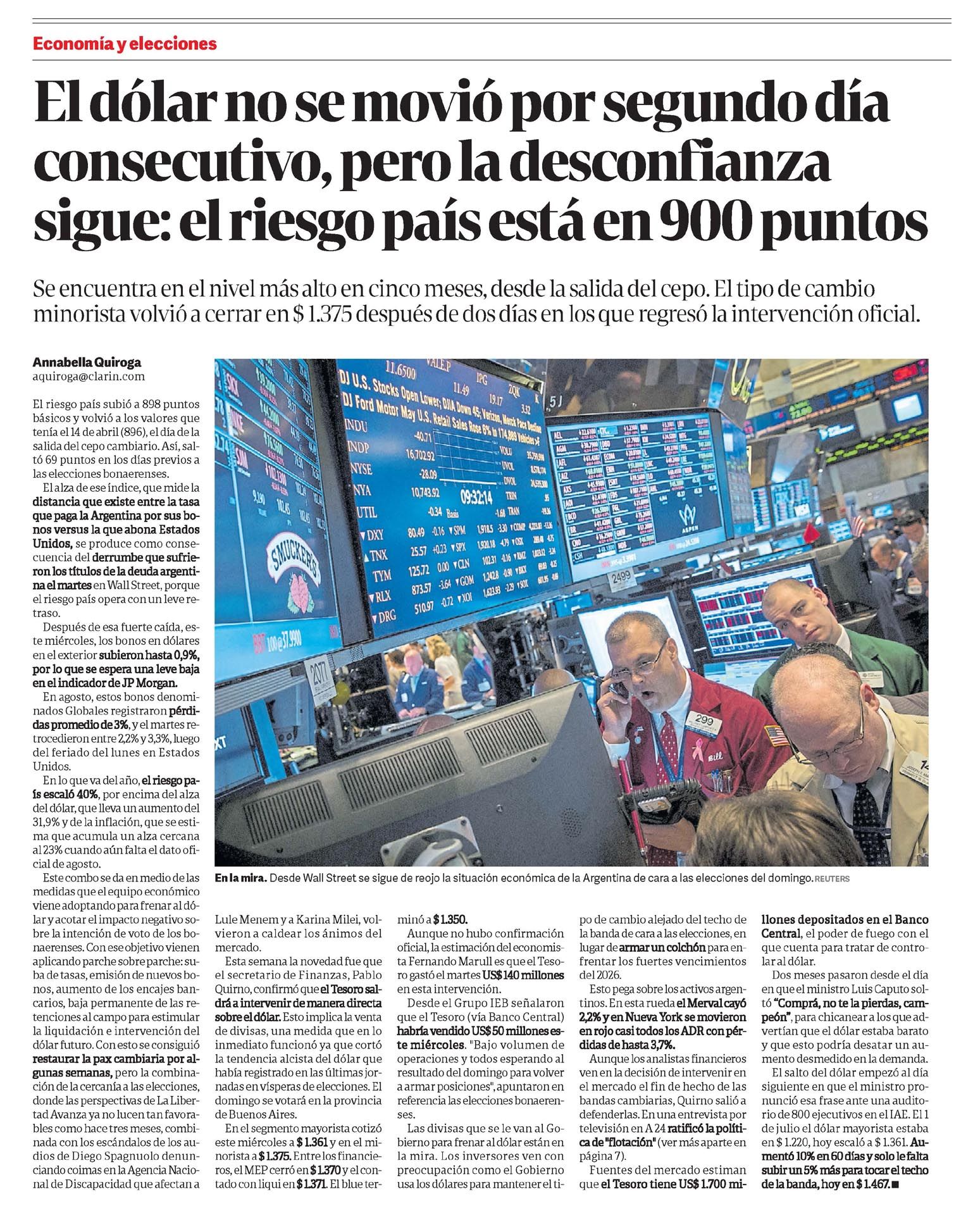 El dólar no se movió por segundo día consecutivo, pero la desconfianza sigue: el riesgo país está en 900 puntos