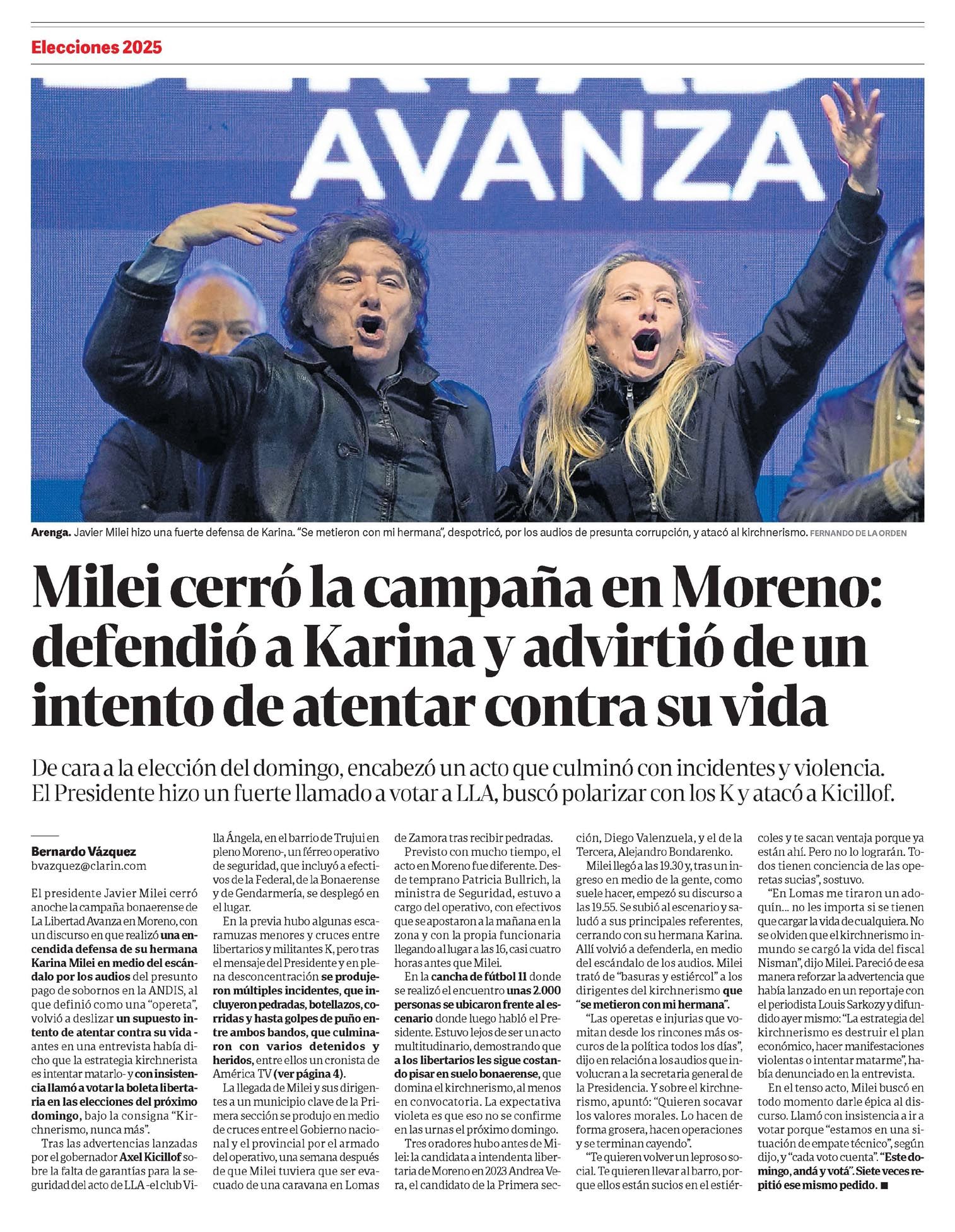 El Presidente hizo un fuerte llamado a votar a LLA, buscó polarizar con los K y atacó a Kicillof.
