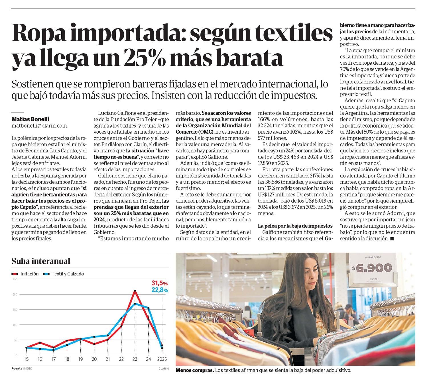 CLARÍN – Ropa importada: según textiles ya llega un 25% más barata