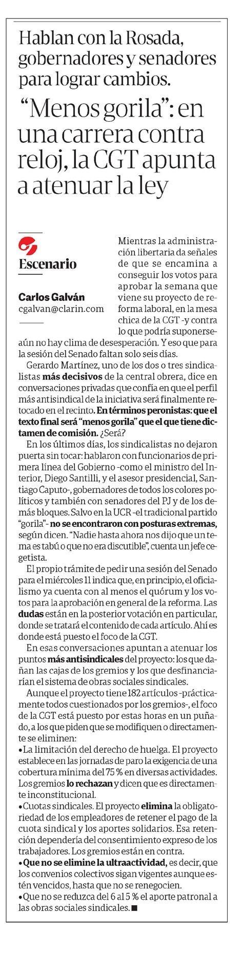 CLARÍN – "Menos gorila": en una carrera contra reloj, la CGT apunta a atenuar la ley
