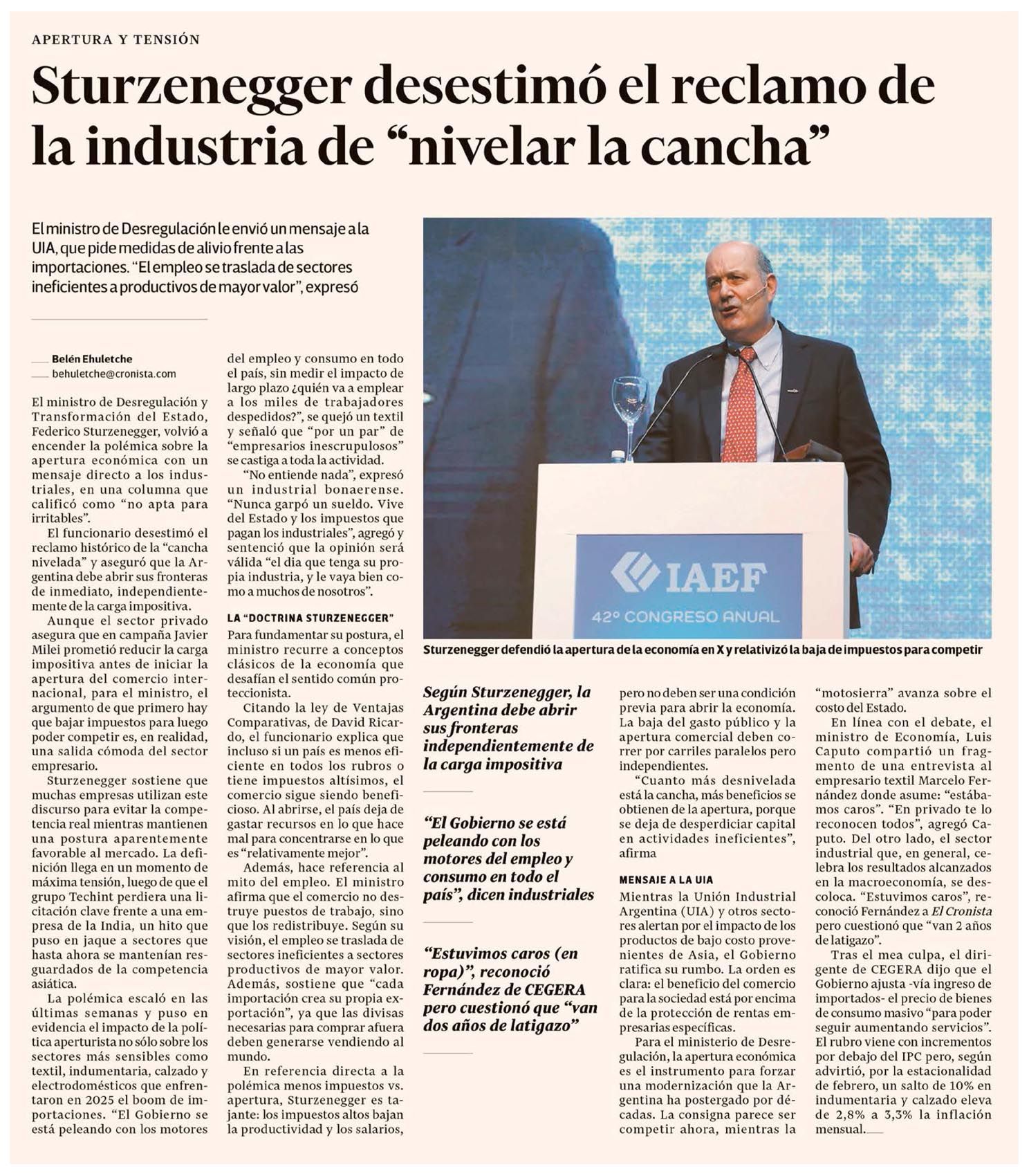 EL CRONISTA – Sturzenegger desestimó el reclamo de la industria de "nivelar la cancha"