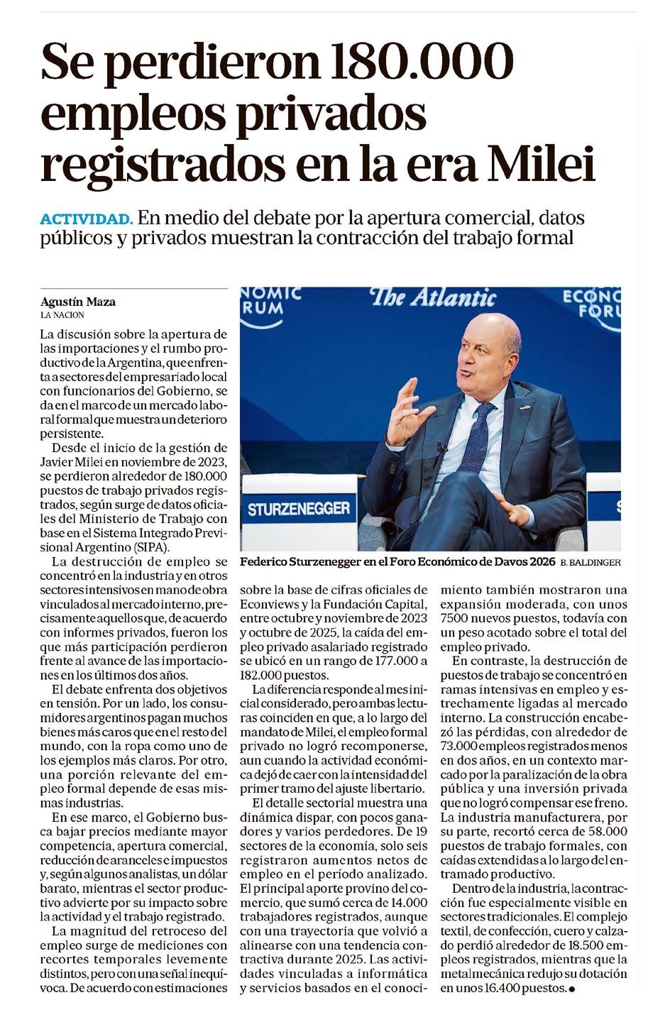 LA NACIÓN – Se perdieron 180.000 empleos privados registrados en la era Milei