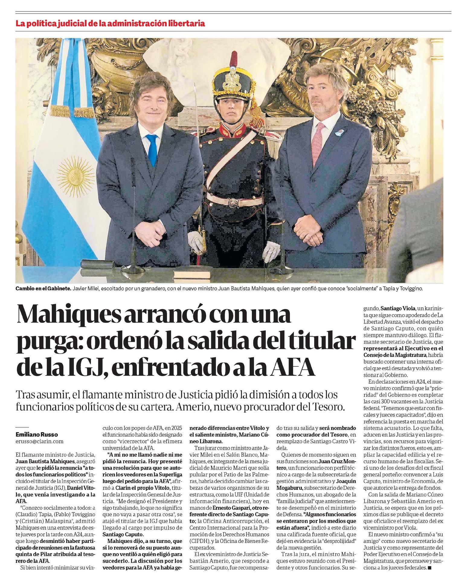 CLARÍN – Mahiques arrancó con una purga: ordenó la salida del titular de la IGJ, enfrentado a la AFA