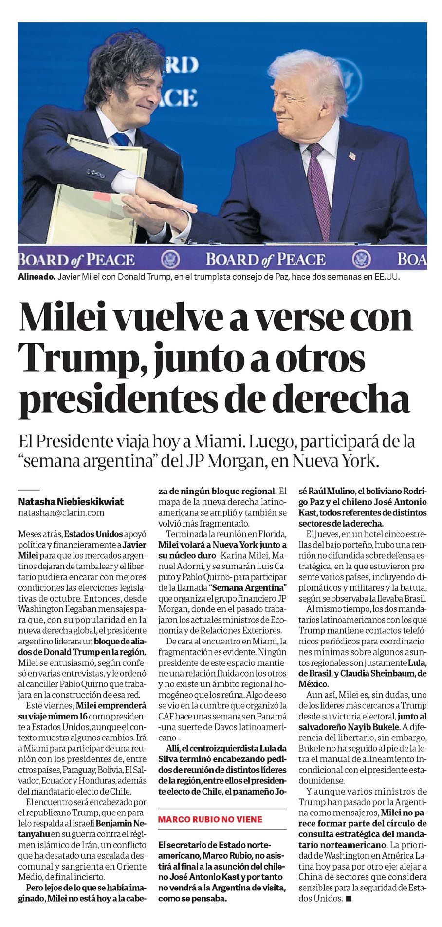 CLARÍN – Milei vuelve a verse con Trump, junto a otros presidentes de derecha