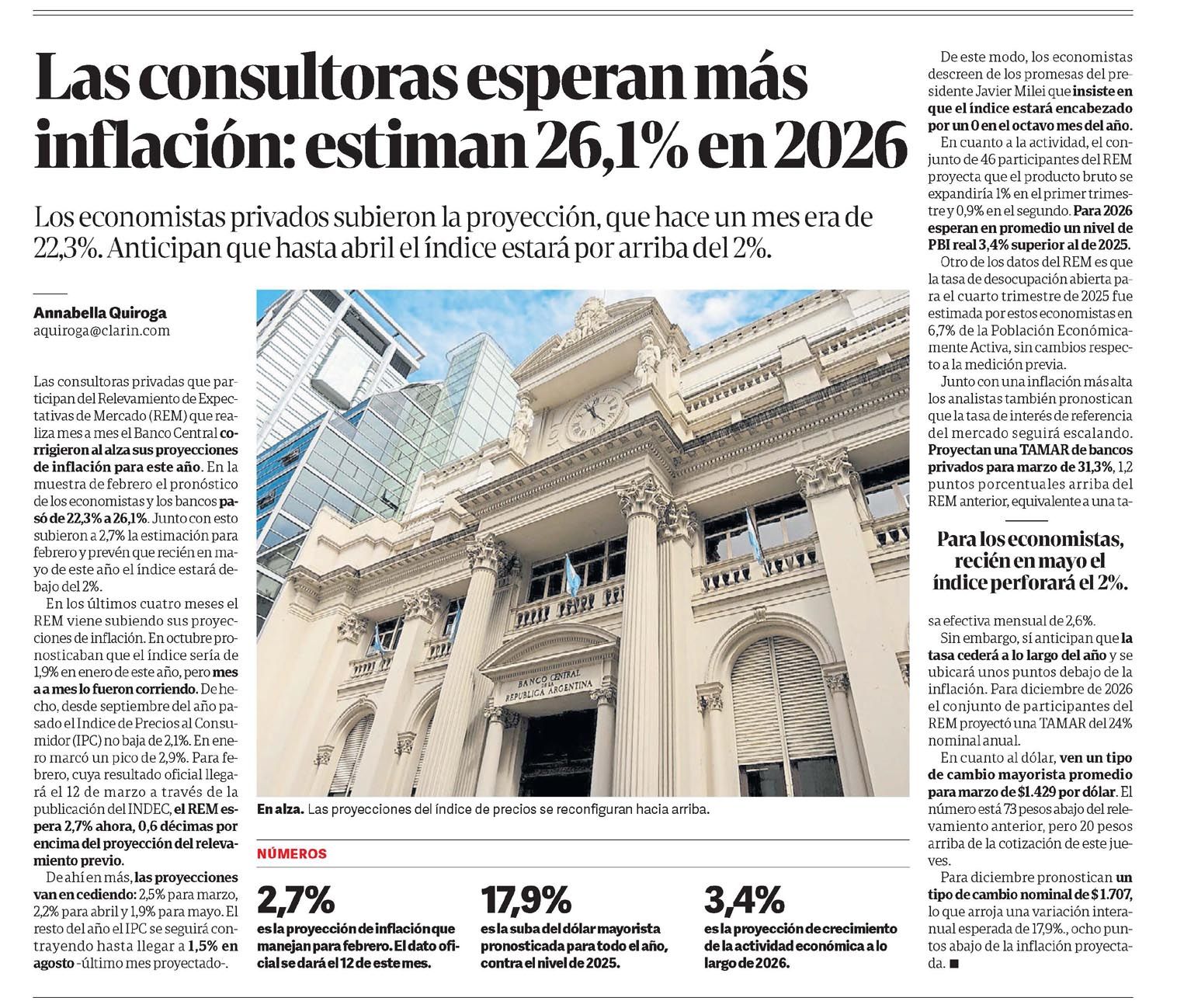 CLARÍN – Las consultoras esperan más inflación: estiman 26,1% en 2026