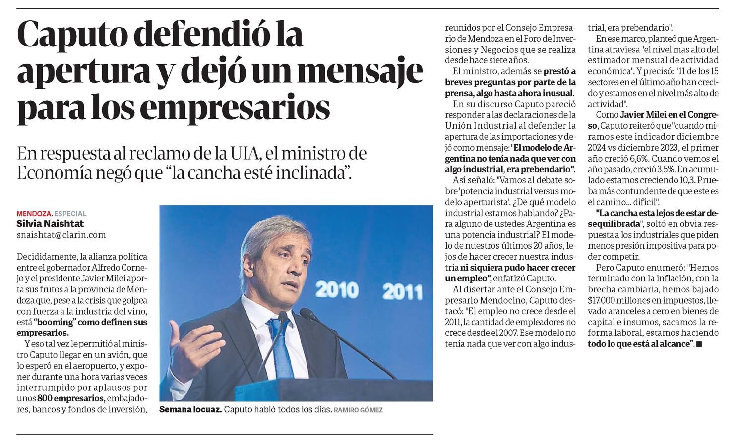 CLARÍN – Caputo defendió la apertura y dejó un mensaje para los empresarios