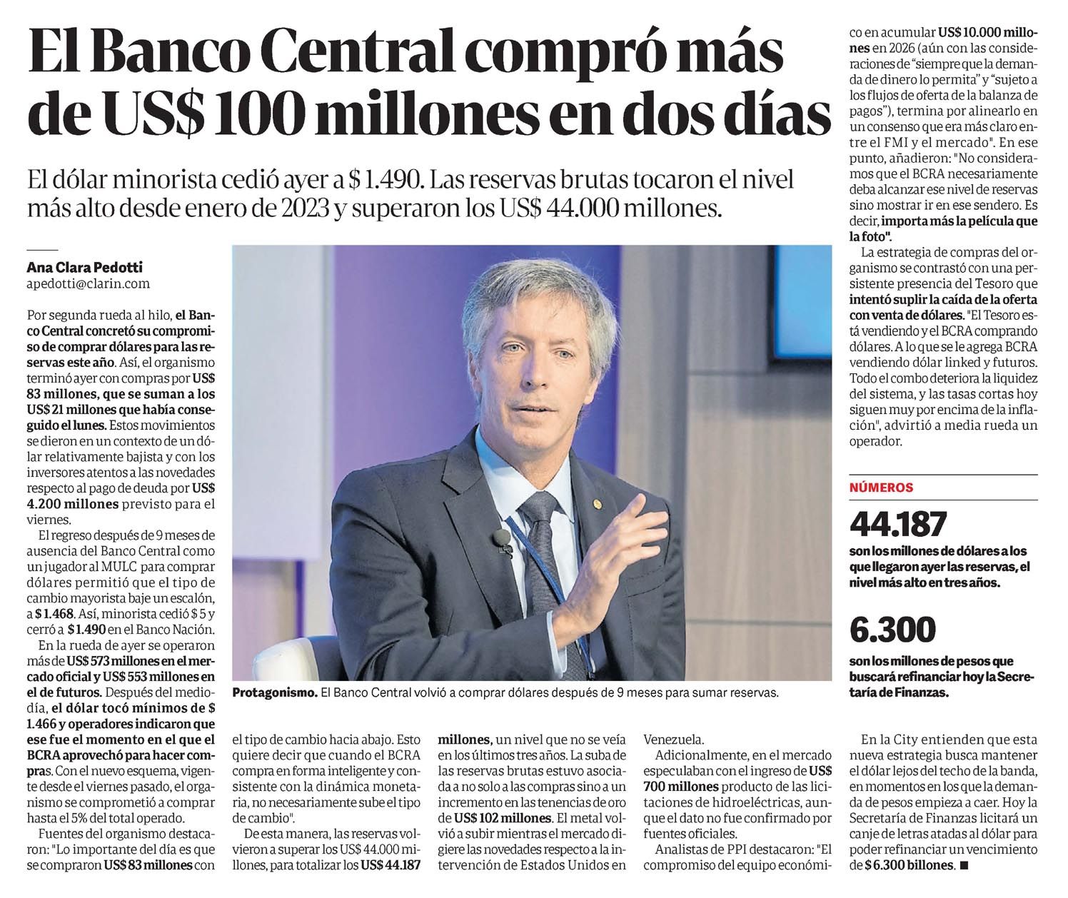 CLARÍN – El Banco Central compró más de US$ 100 millones en dos días