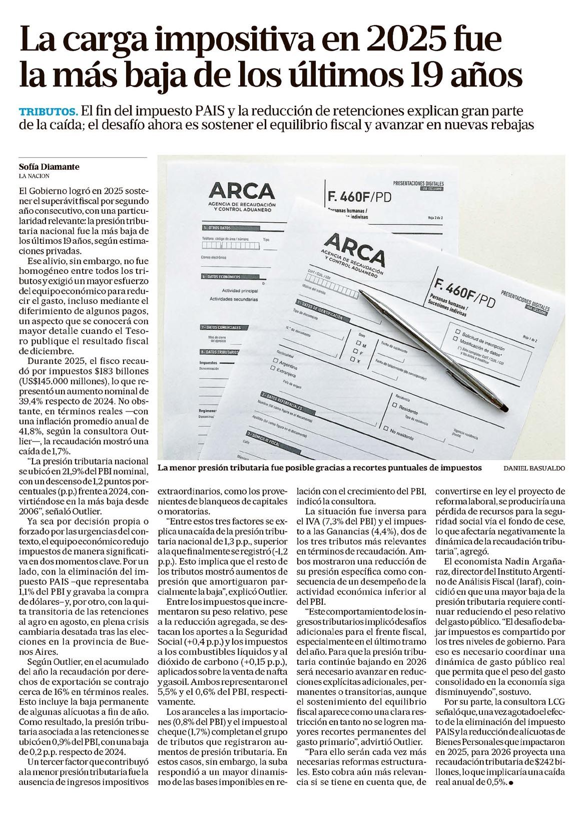 LA NACIÓN – La carga impositiva en 2025 fue la más baja de los últimos 19 años