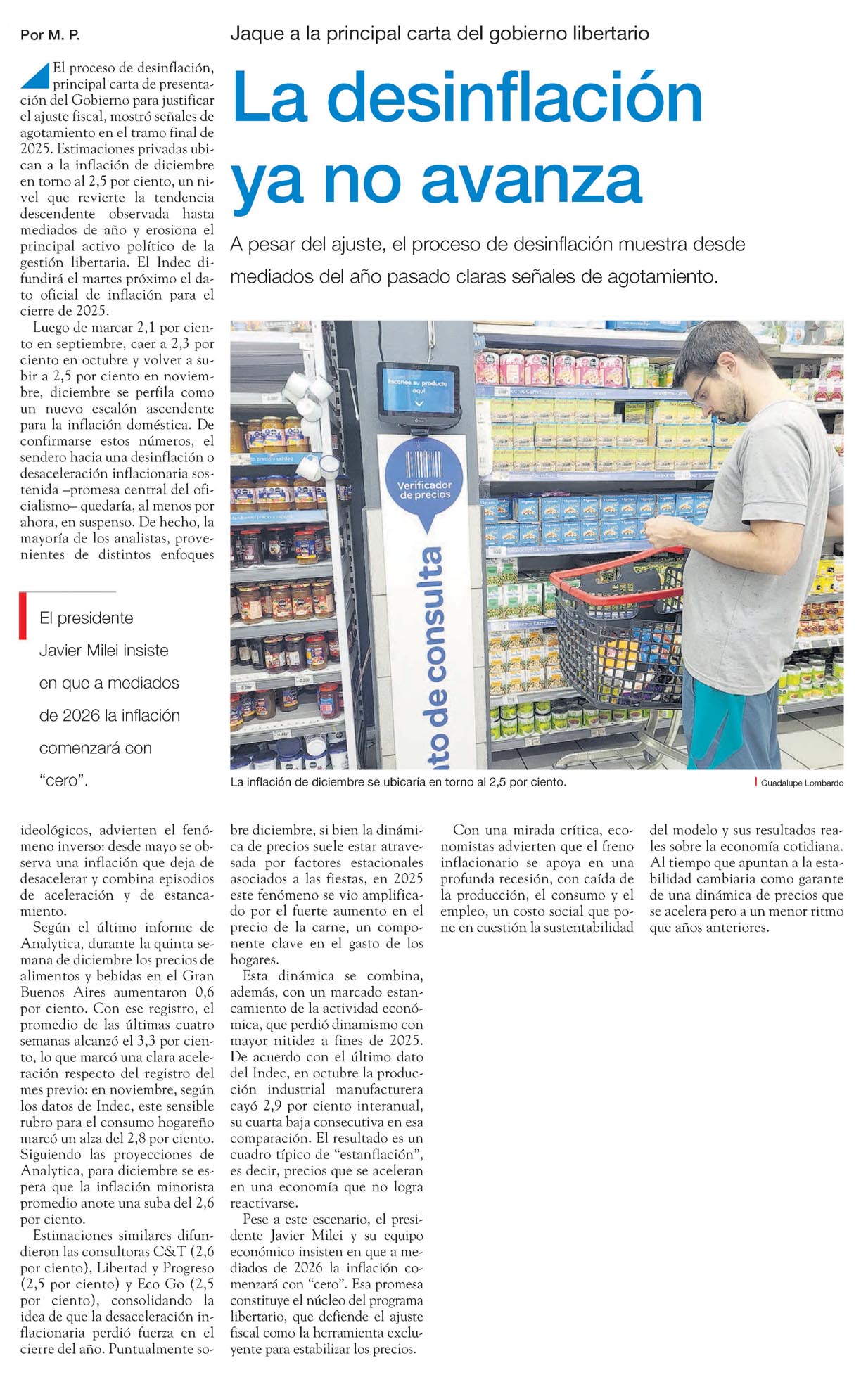 A pesar del ajuste, el proceso de desinflación muestra desde mediados del año pasado claras señales de agotamiento.