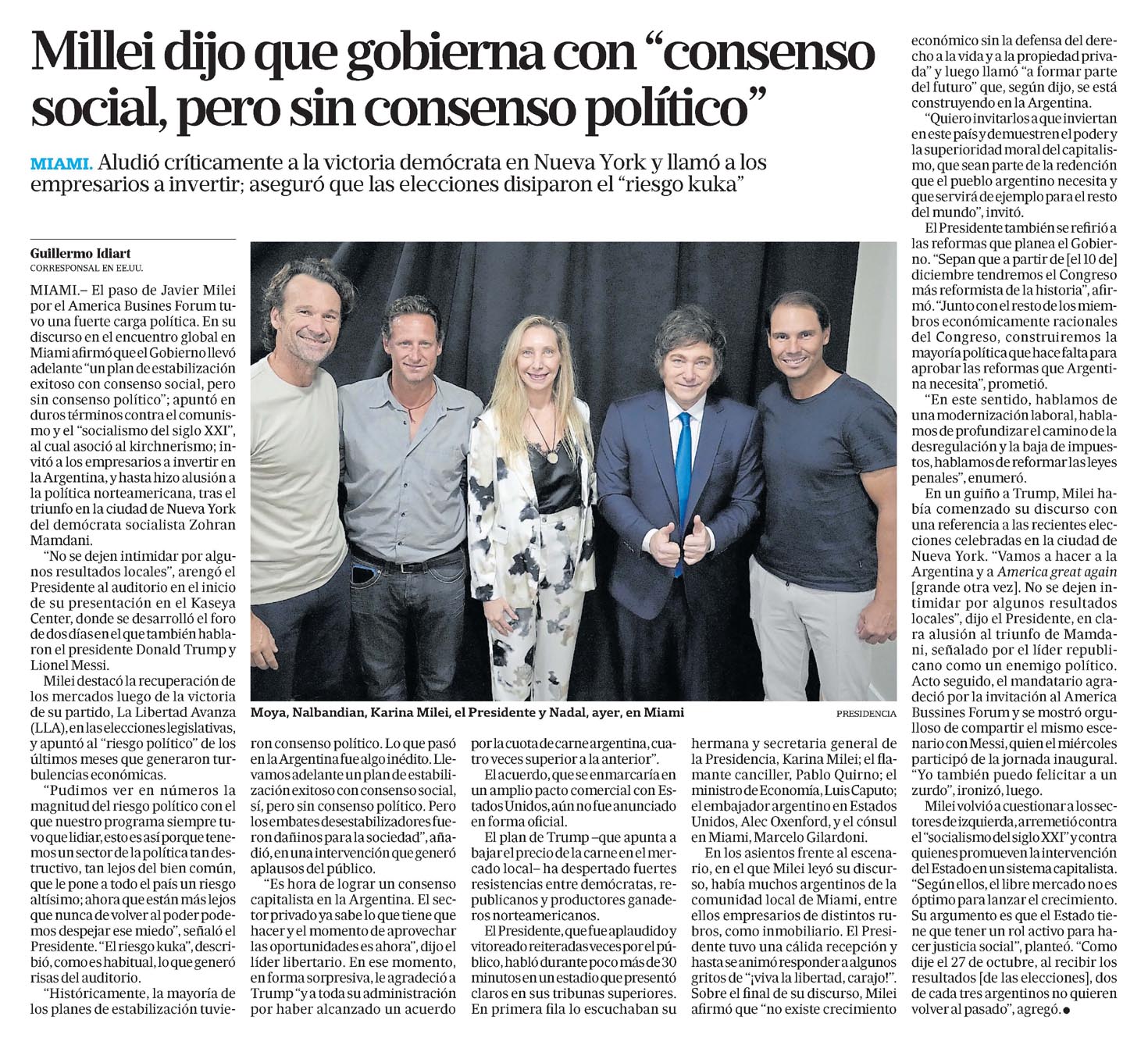 LA NACIÓN – Milei dijo que gobierna con consenso social, pero sin consenso político