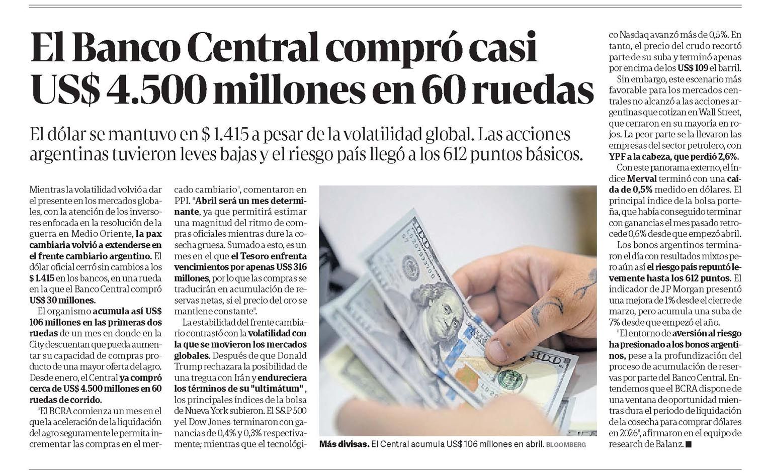 CLARÍN – El Banco Central compró casi US$ 4.500 millones en 60 ruedas