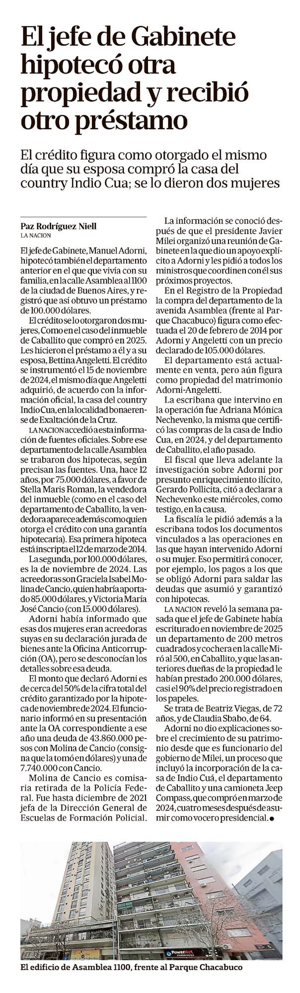 LA NACIÓN – El jefe de Gabinete hipotecó otra propiedad y recibió otro préstamo