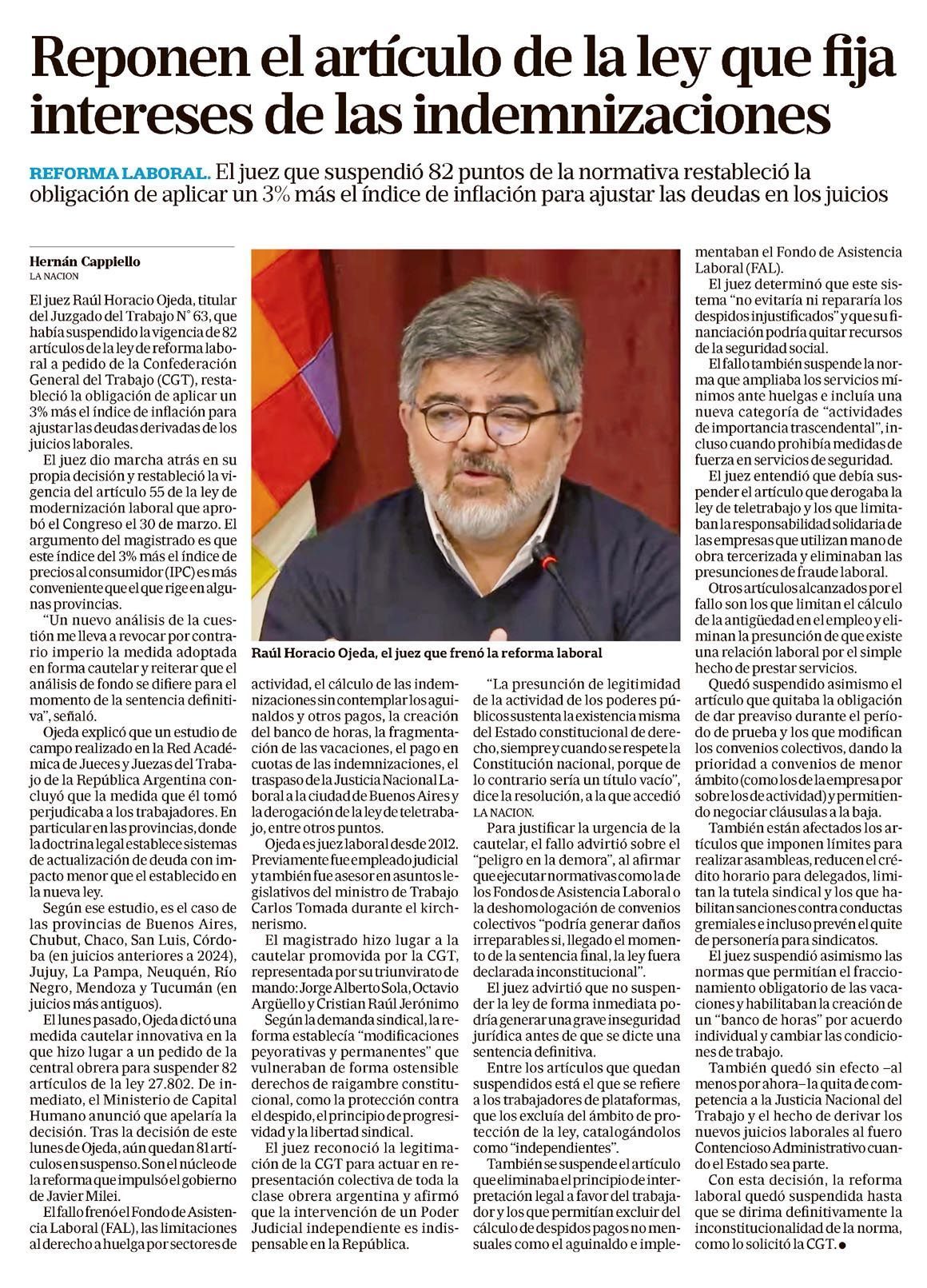LA NACIÓN – Reponen el artículo de la ley que fija intereses de las indemnizaciones