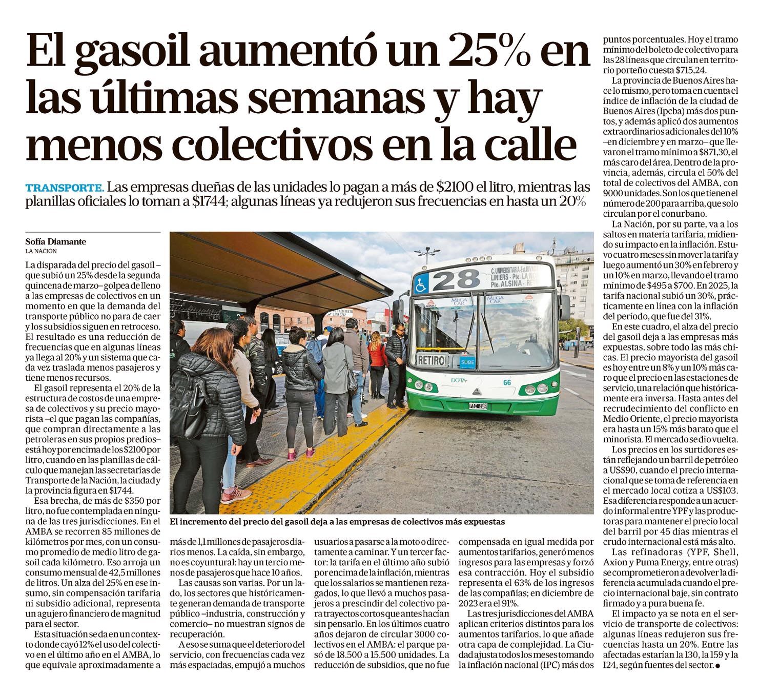 LA NACIÓN – El gasoil aumentó un 25% en las últimas semanas y hay menos colectivos en la calle