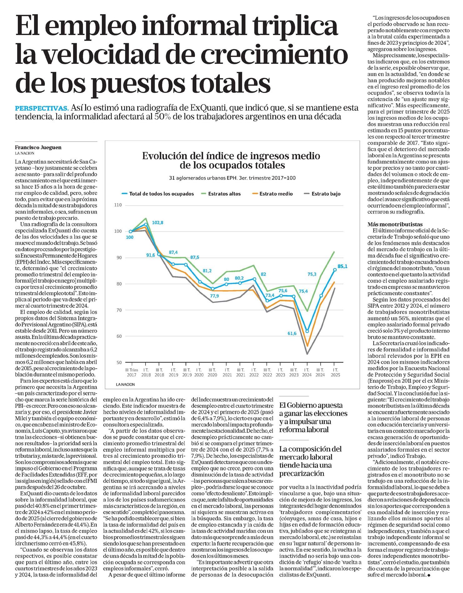 PERSPECTIVAS. Así lo estimó una radiografía de ExQuanti, que indicó que, si se mantiene esta tendencia, la informalidad afectará al 50% de los trabajadores argentinos en una década