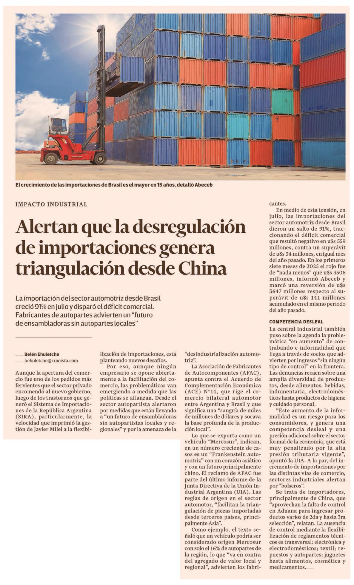 EL CRONISTA – Alertan que la desregulación de importaciones genera triangulación desde China