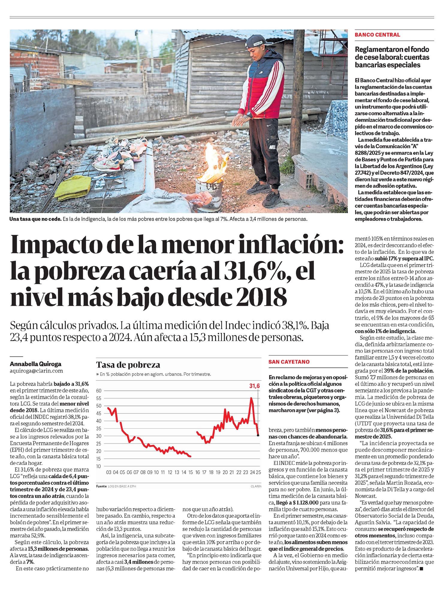 CLARÍN – Impacto de la menor inflación: la pobreza caería al 31,6%, el nivel más bajo desde 2018