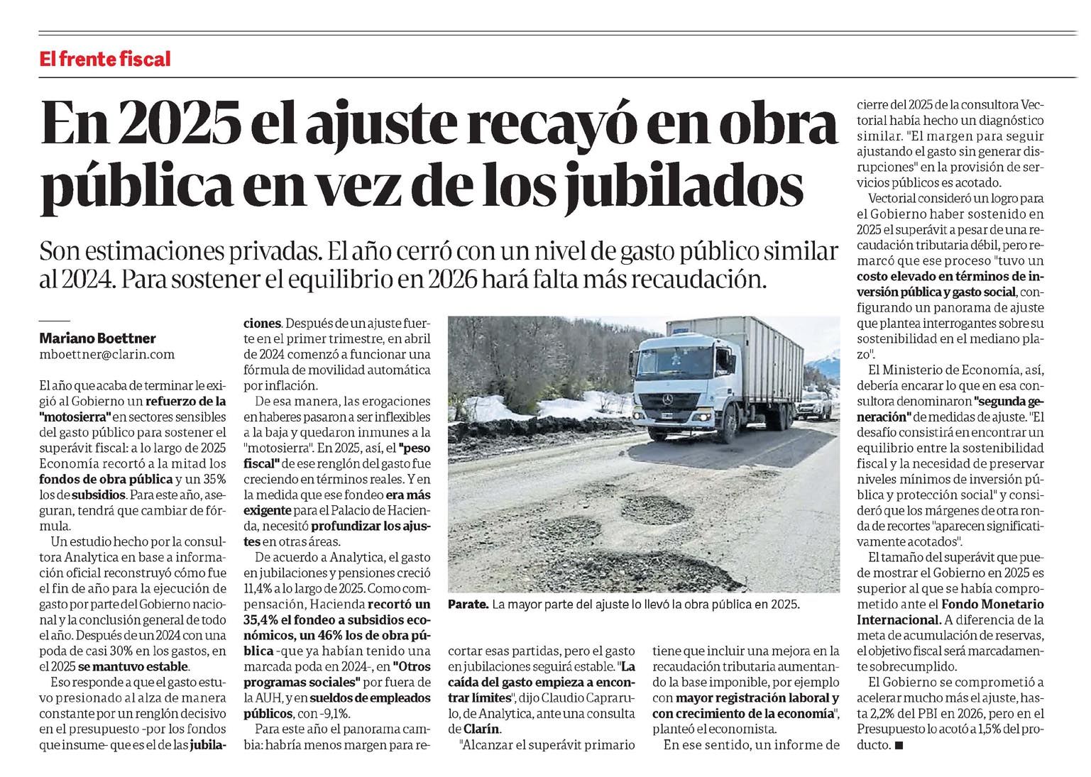 CLARÍN – En 2025 el ajuste recayó en obra pública en vez de los jubilados