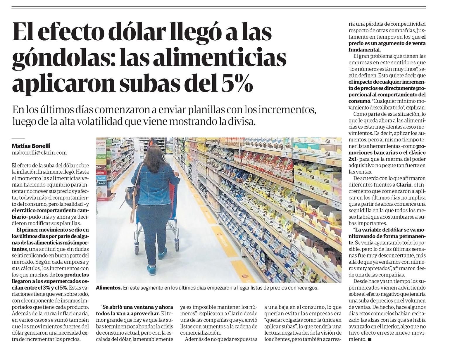 CLARÍN – El efecto dólar llegó a las góndolas: las alimenticias aplicaron subas del 5%