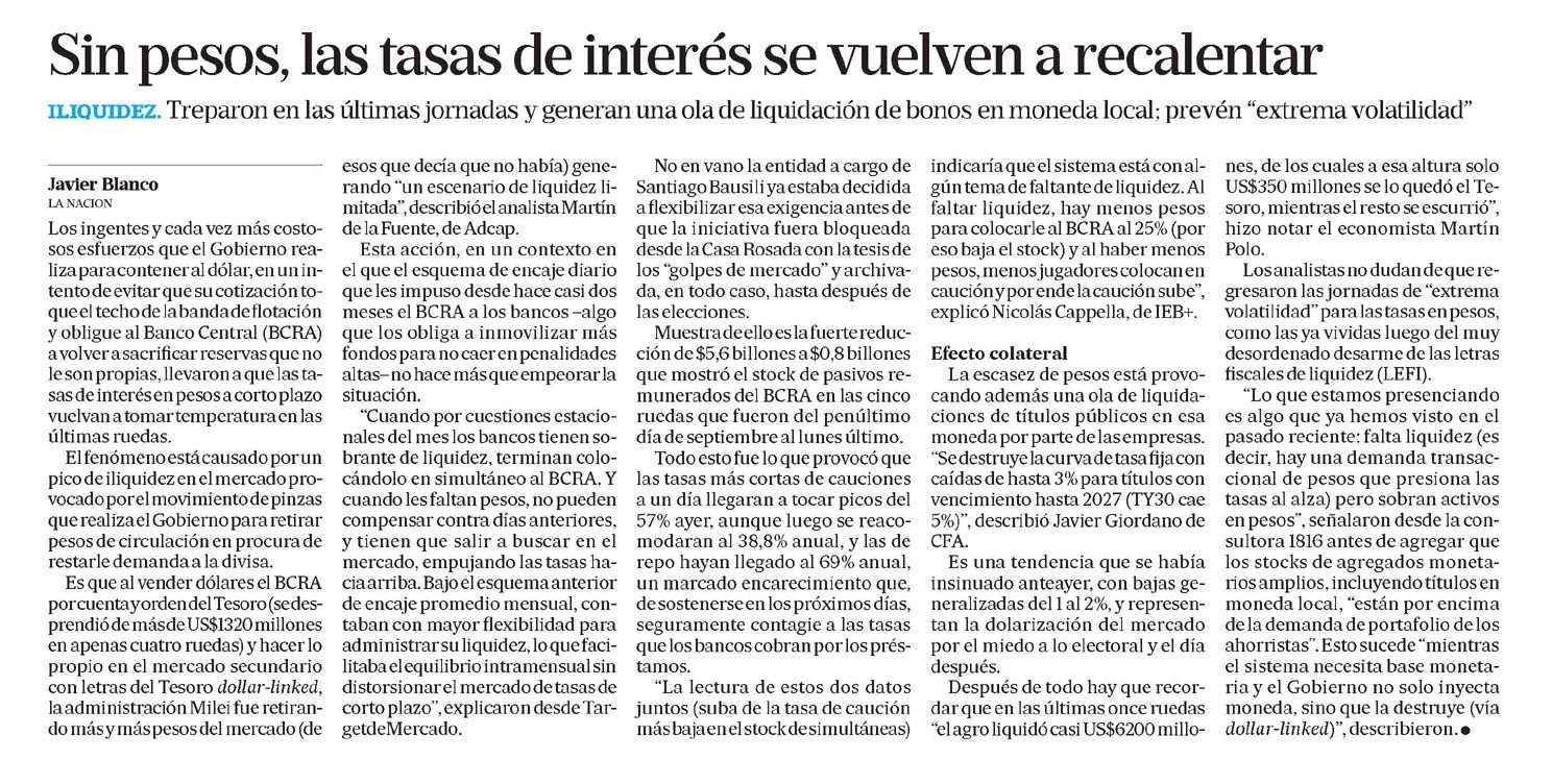 LA NACIÓN – Sin pesos, las tasas de interés se vuelven a recalentar