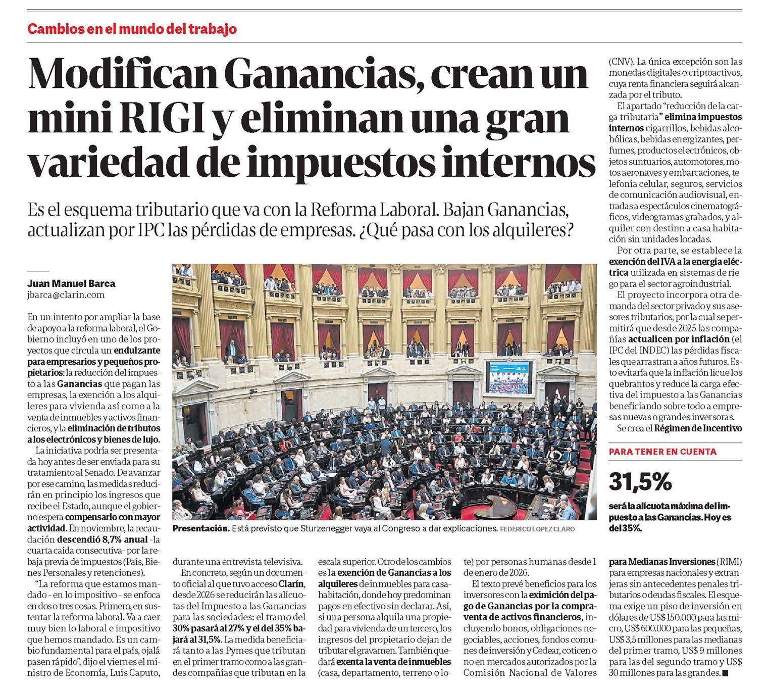 CLARÍN – Modifican Ganancias, crean un régimen y eliminan una variedad de impuestos internos