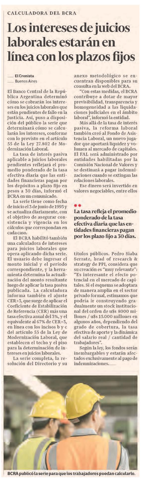 EL CRONISTA – Los intereses de juicios laborales estarán en línea con los plazos fijos
