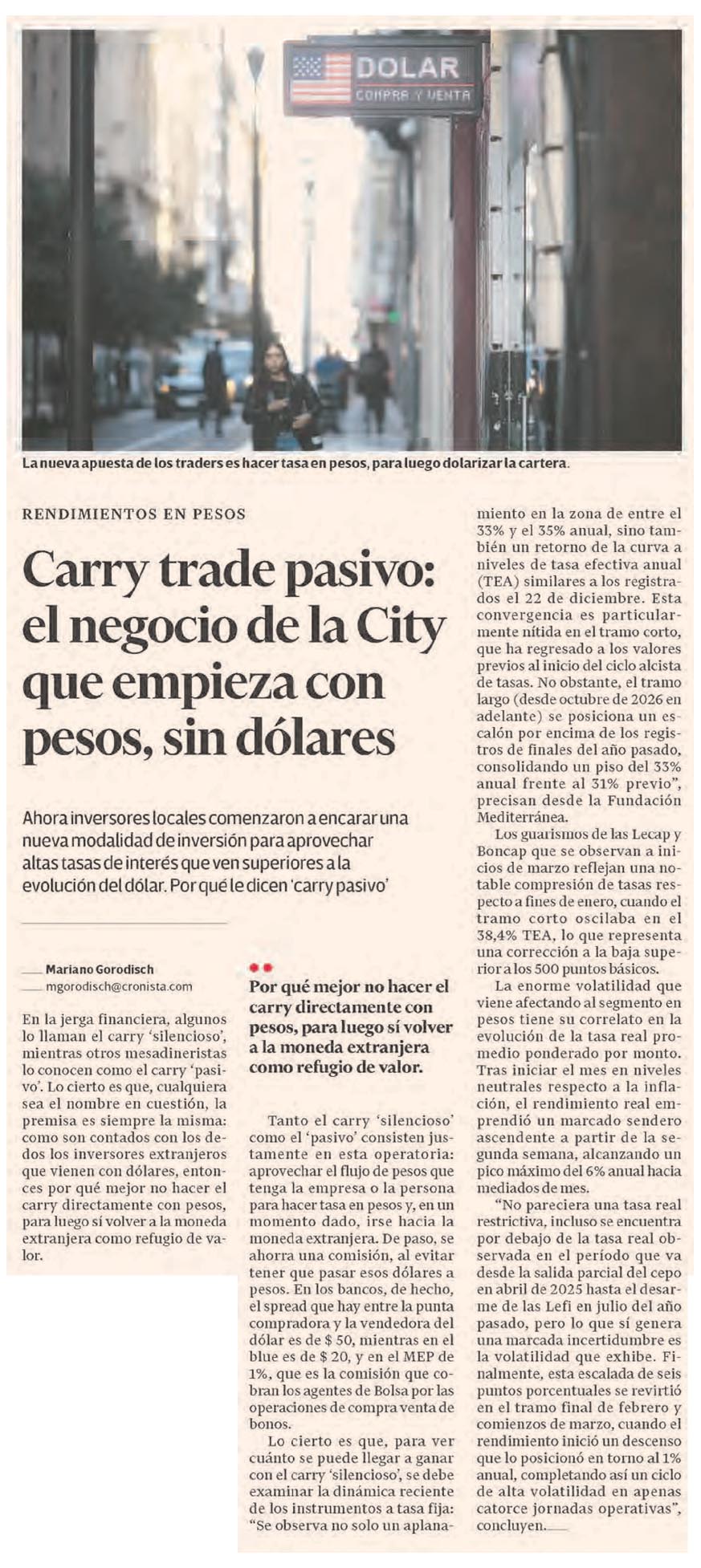 EL CRONISTA – Carry trade pasivo: el negocio de la City que empieza con pesos, sin dólares