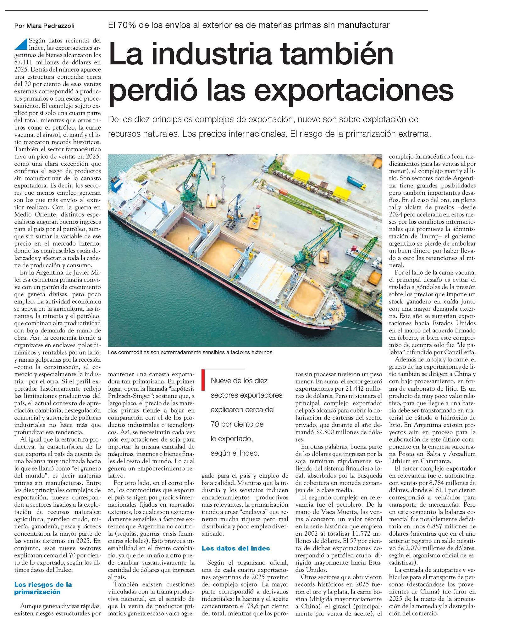 De los diez principales complejos de exportación, nueve son sobre explotación de recursos naturales. Los precios internacionales. El riesgo de la primarización extrema.